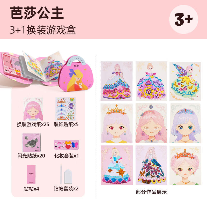 美乐童年化妆书芭莎公主钻石贴画安静书女孩手工儿童diy玩具生日礼物 芭莎公主