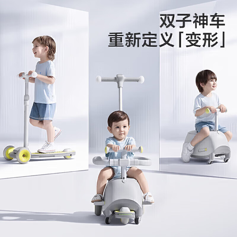 babycare双子滑板车儿童滑板车1-3-8岁多功能遛娃神器宝宝滑滑车 星屑灰