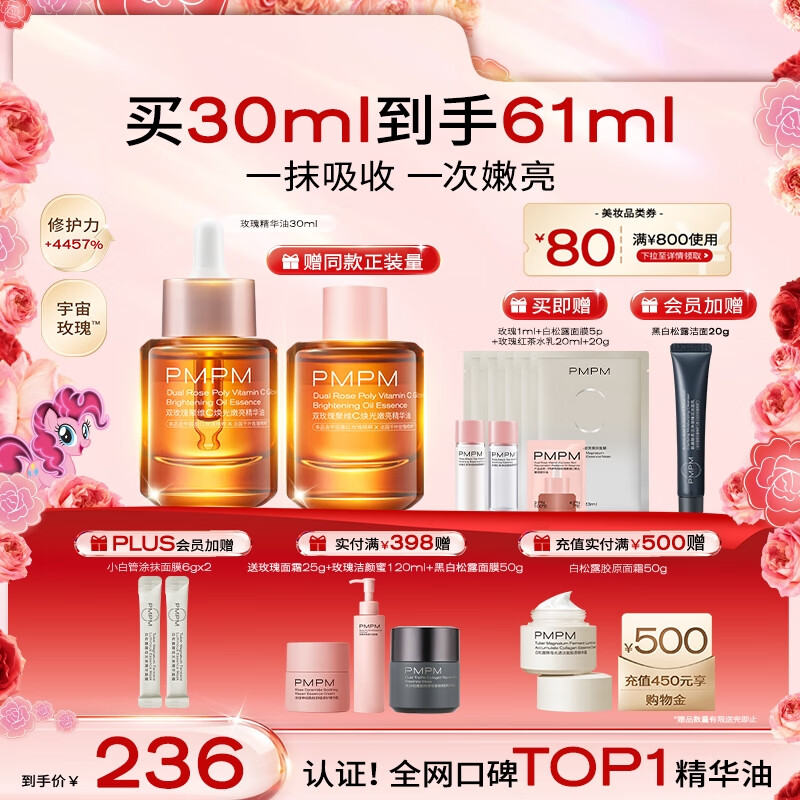 PMPM玫瑰精华油60ml 嫩亮面部精油 抗皱提亮修护维稳护肤品礼物送女友