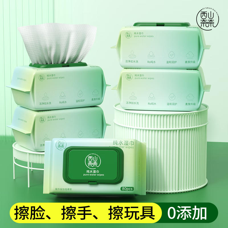【纯水】加厚湿巾西山奈奈新生婴儿手口湿纸巾宝宝大包带盖家庭装 新客1包80抽