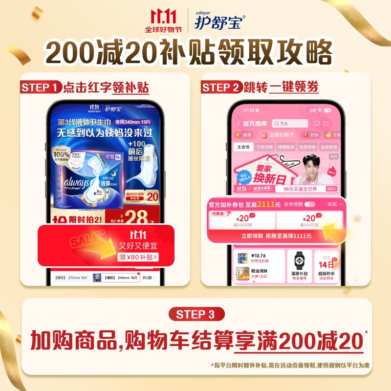 护舒宝革新瞬洁云感棉卫生巾量多日用284mm16片姨妈巾京东自营官方旗舰