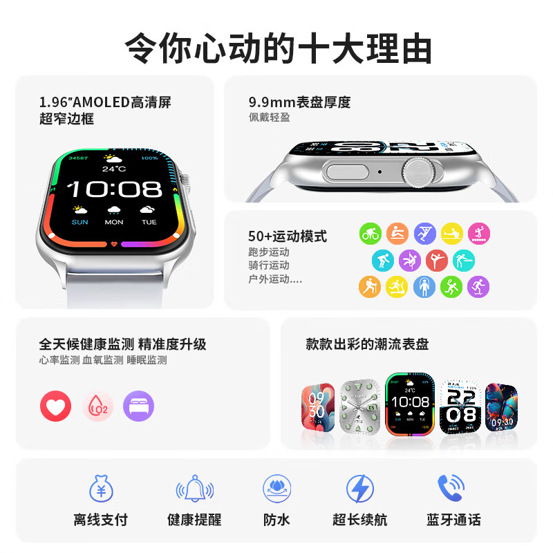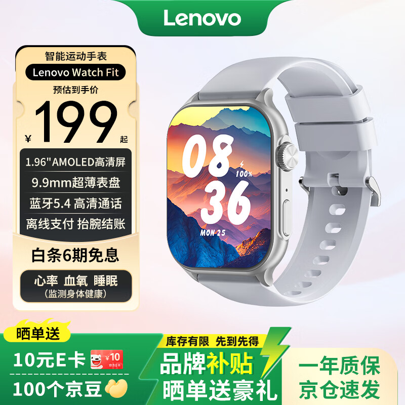 联想(Lenovo)智能手表Watch Fit 轻薄大屏减脂血氧心率睡眠蓝牙通话穿戴男女运动手表 云石银 男女朋友礼物
