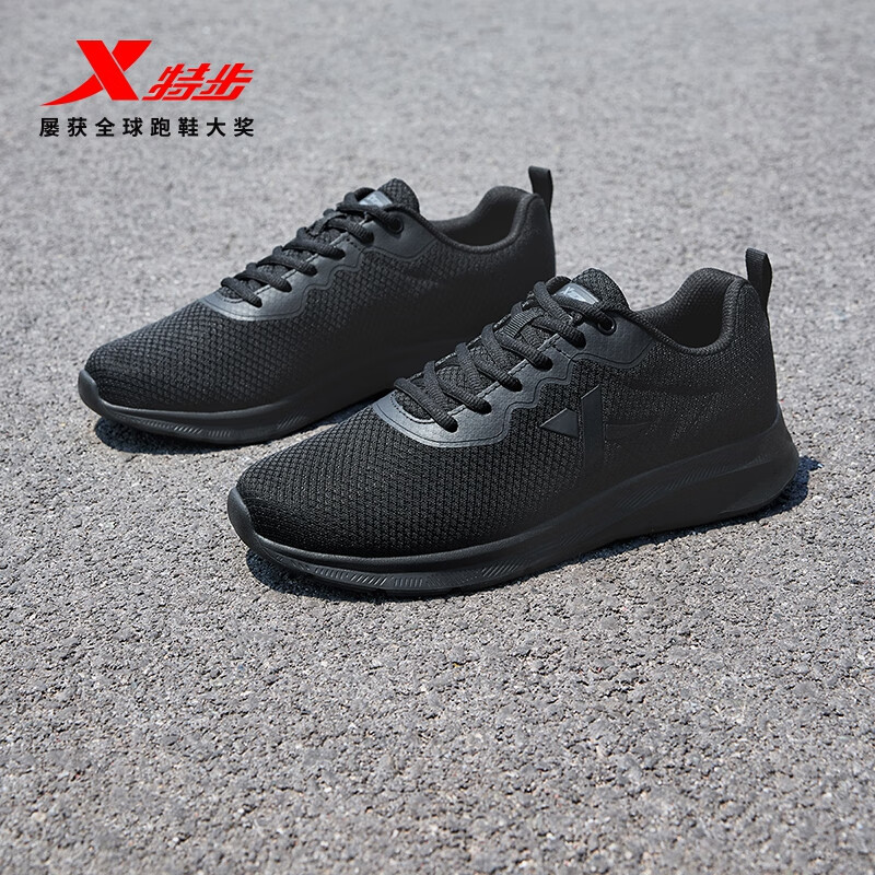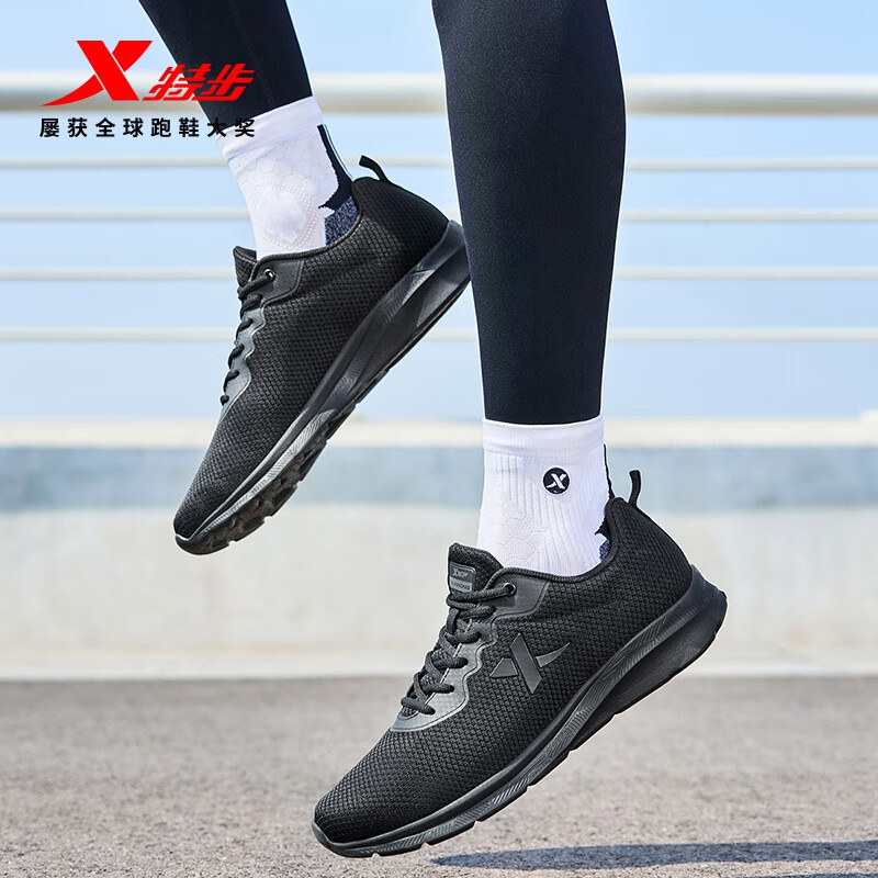 特步运动鞋男跑步鞋春夏季网面透气轻便减震正品男子跑鞋休闲鞋子黑色