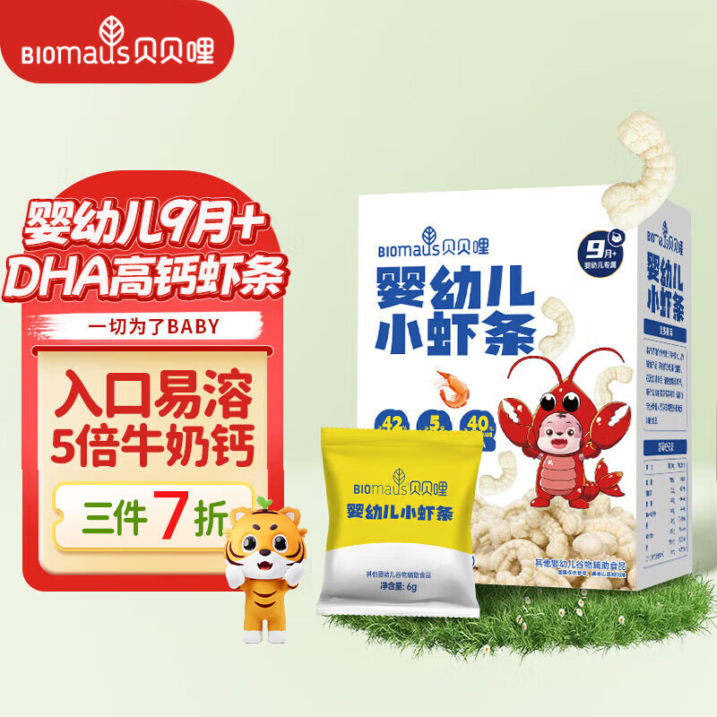 贝贝哩婴幼儿小虾条 宝宝婴儿零食 儿童磨牙饼干0添加小包装36g 9月+
