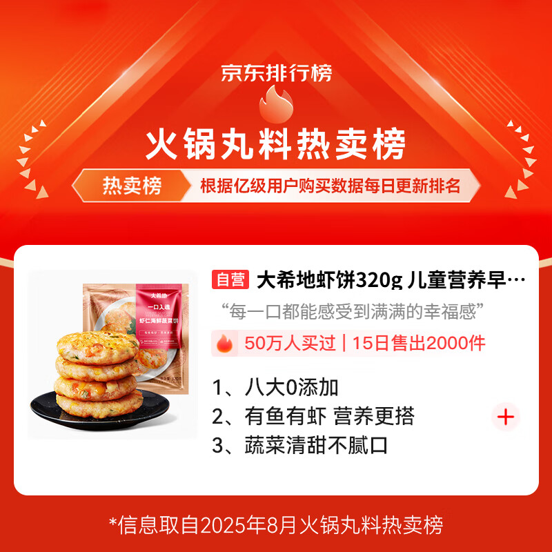 大希地虾饼320g 儿童营养早餐 海鲜半成品虾排虾滑减脂餐低脂
