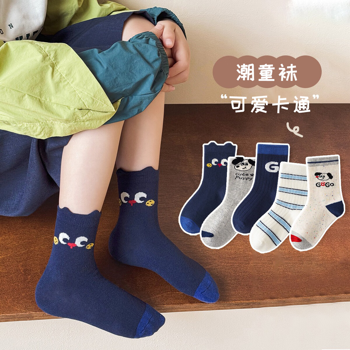 卡拉美拉(Caramella)儿童袜子女童男童秋冬棉袜亲肤透气可爱卡通休闲袜 藏青小狗 混色 10双 4-6岁 (M)