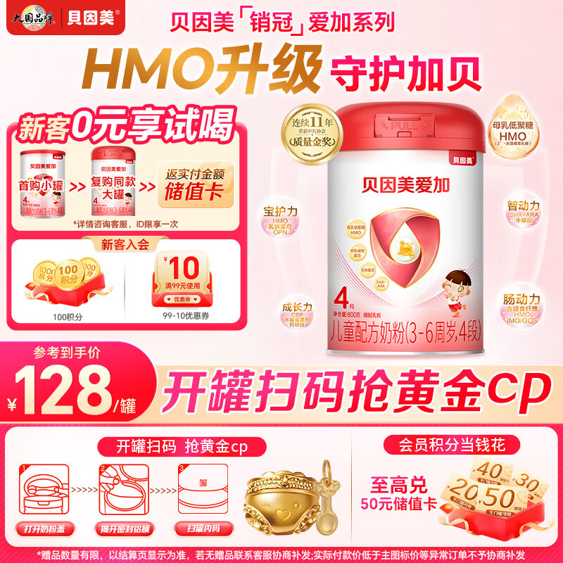 贝因美爱加3-6岁儿童成长奶粉调制乳粉4段800g 免疫成长奶粉含乳铁蛋白