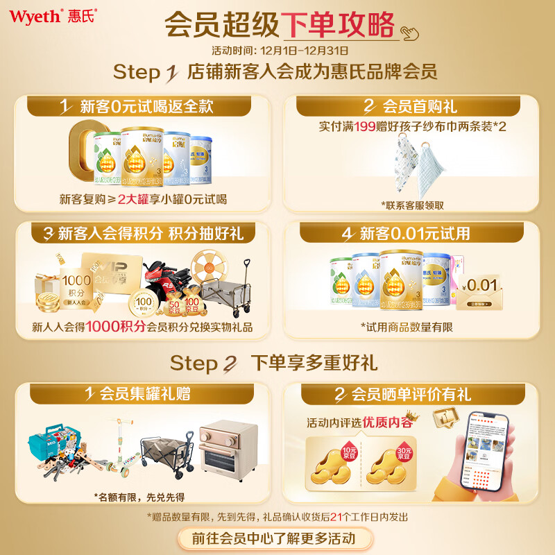 惠氏(Wyeth)铂臻进口DHA幼儿配方奶粉3段(12-36月)780g