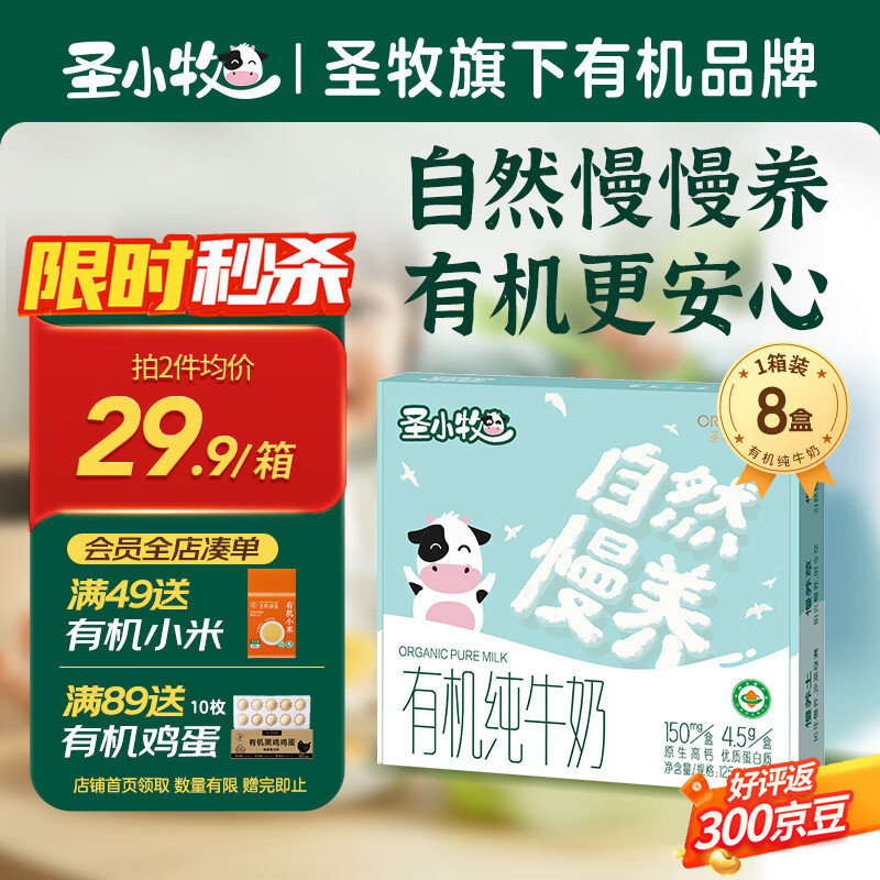 圣小牧圣牧有机儿童牛奶早餐奶 每盒4.5g蛋白150mg高钙125ml*8盒
