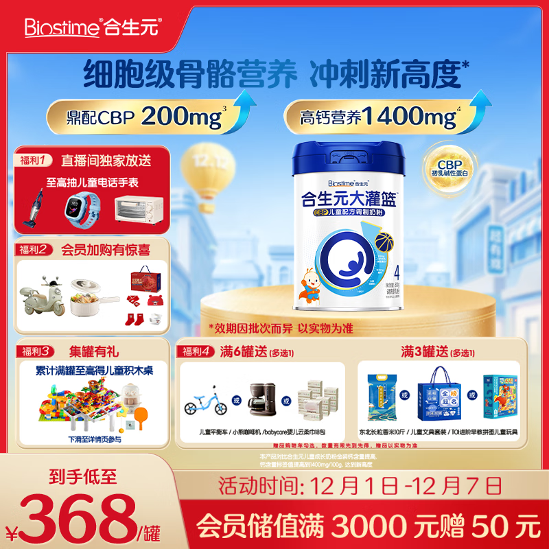 合生元(BIOSTIME)大灌篮CBP儿童成长奶粉高钙奶粉DHA(3-16岁)赖氨酸800g单罐