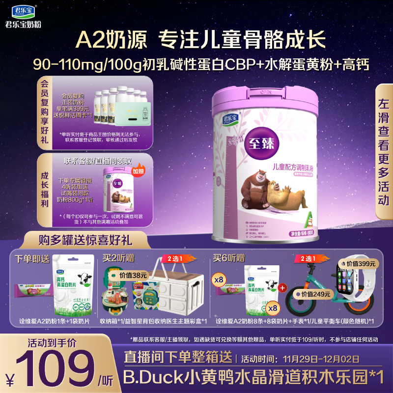 君乐宝至臻4段A2奶源儿童成长奶粉800g(2米11)CBP高钙骨骼发育3周岁以上