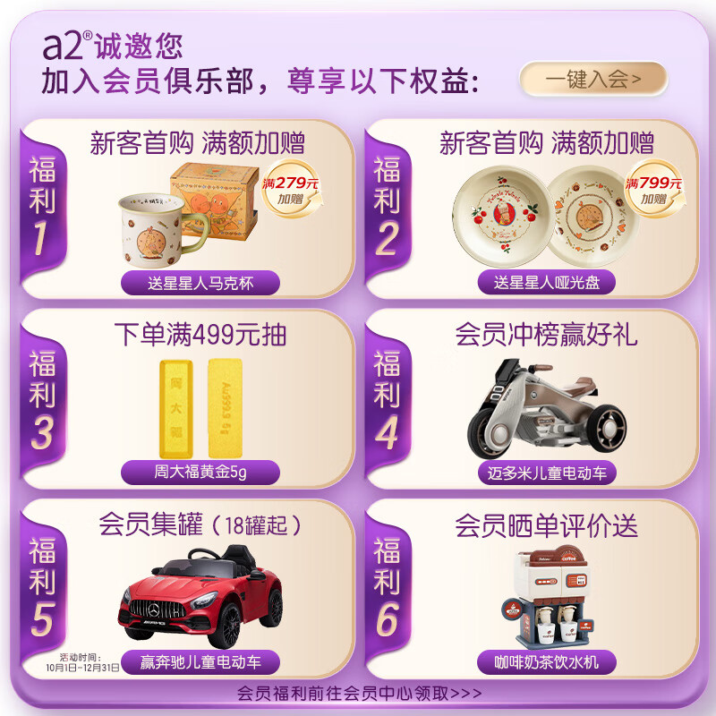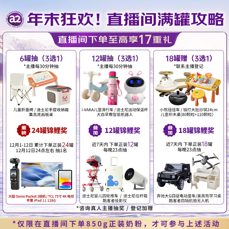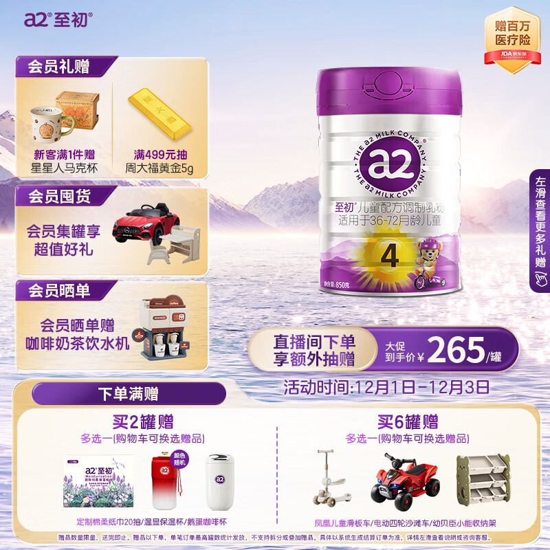a2至初 4段奶粉儿童配方调制乳粉3-6岁850g 四段儿童奶粉含乳铁蛋白