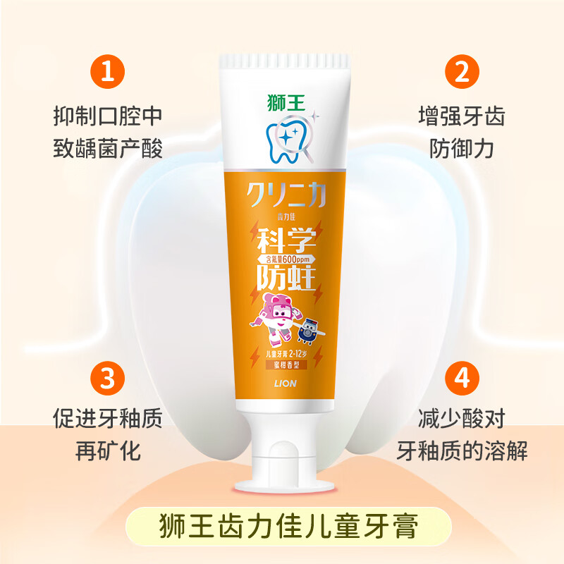 狮王细齿洁儿童牙刷齿力佳儿童牙膏 齿力佳防蛀儿童牙膏蜜柑味50g