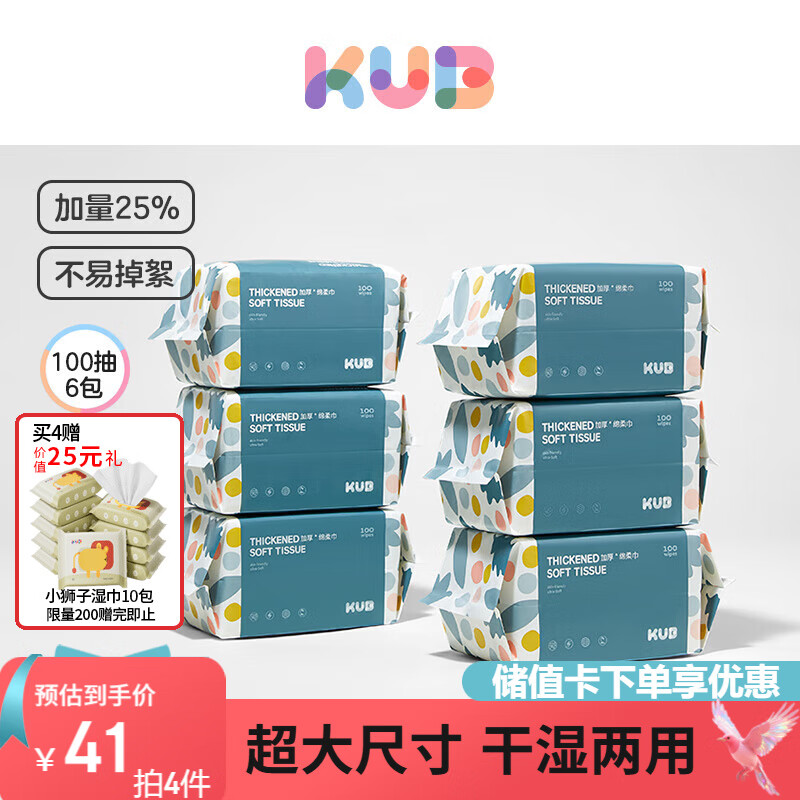 可优比(KUB)婴儿洗脸巾干湿两用手口屁专用加厚加大100抽*6包 成人可用