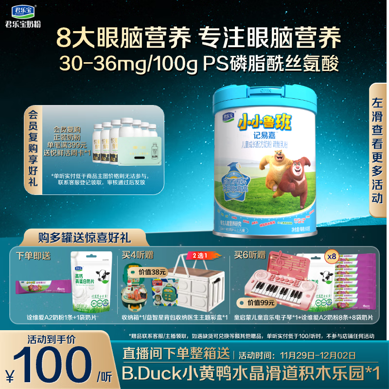 君乐宝(JUNLEBAO)小小鲁班儿童配方奶粉4段关注脑动力800g 添加PS+DHA