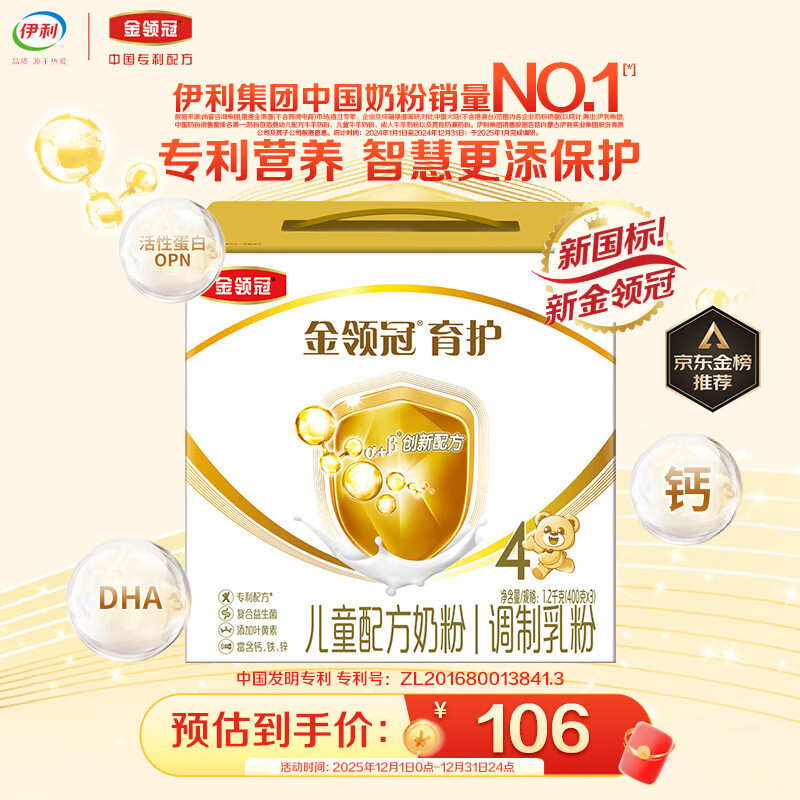 伊利金领冠育护【全面营养】奶粉4段(3-6岁)1200g三联装