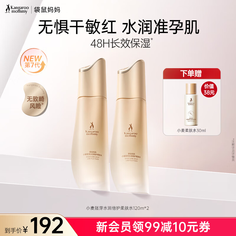 袋鼠妈妈小麦柔肤水准孕妇护肤品套装保湿补水洁面乳爽肤水素颜霜化妆品 【到手270ml】小麦柔肤水120ml*2