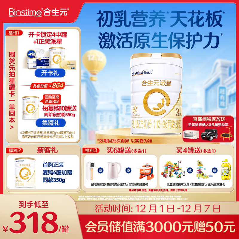 合生元(BIOSTIME)派星 幼儿配方奶粉 3段(12-36个月) 新国标 800g