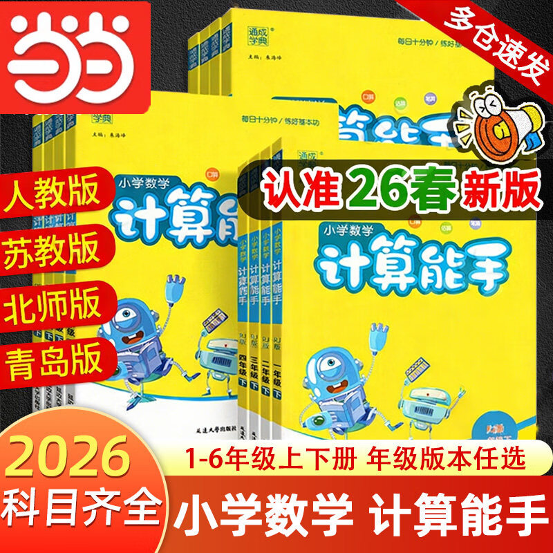 当当网2026春小学数学计算能手 数学提优能手一年级二年级三四六五年级下册上册人教版苏教版江苏北师大口算天天练小能手同步专项强化训练练习题 数学计算【苏教版】江苏专版 【26春】三年级下册