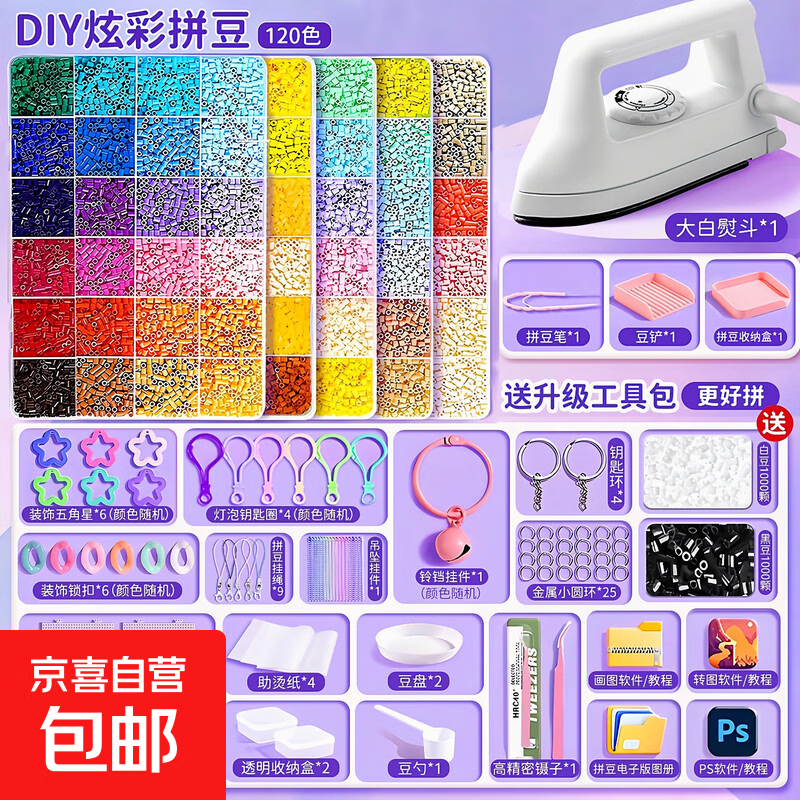 精品拼豆diy材料包全套立体融合手工拼豆豆套装工具笔熨斗补充包 【补充装】黑豆1000+白豆1000