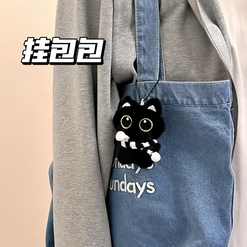 【爆款】黑猫玩偶毛绒玩具公仔挂件i包包挂饰情侣礼物送女朋友 黑白围巾+黑猫【送黑色珠珠链】 会吱吱叫【10厘米左右】