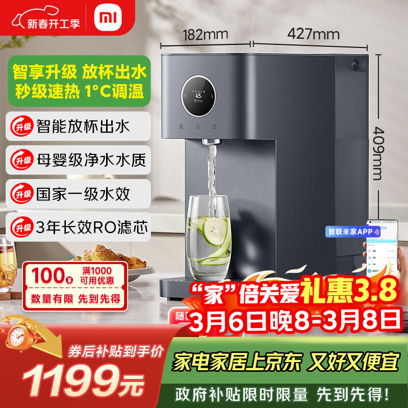 米家小米净水器台式智享版 NFC 开工家用RO反渗透即热原废分离水箱 净水一体机 1级水效MRH142b