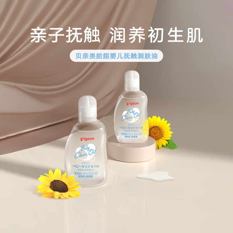 贝亲(Pigeon)婴儿抚触油 新生儿宝宝润肤油 按摩油 可卸防晒 温和滋润 80ml