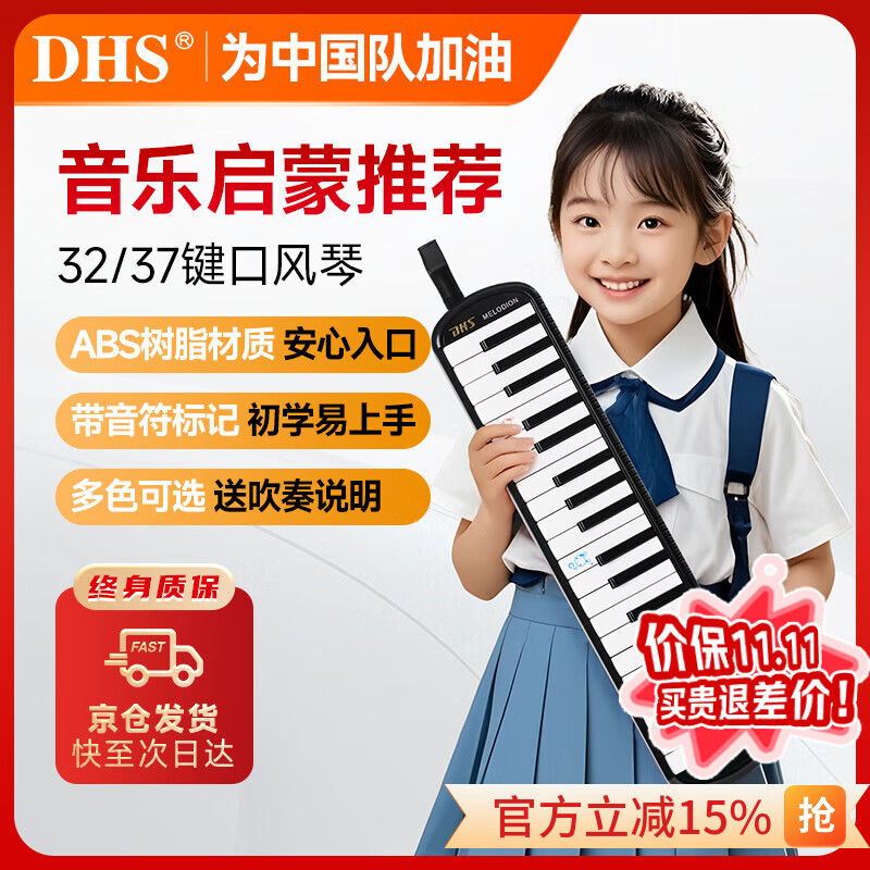 奇美课堂乐器37键DHS口风琴 黑色 帆布软包 配吹管吹嘴教材