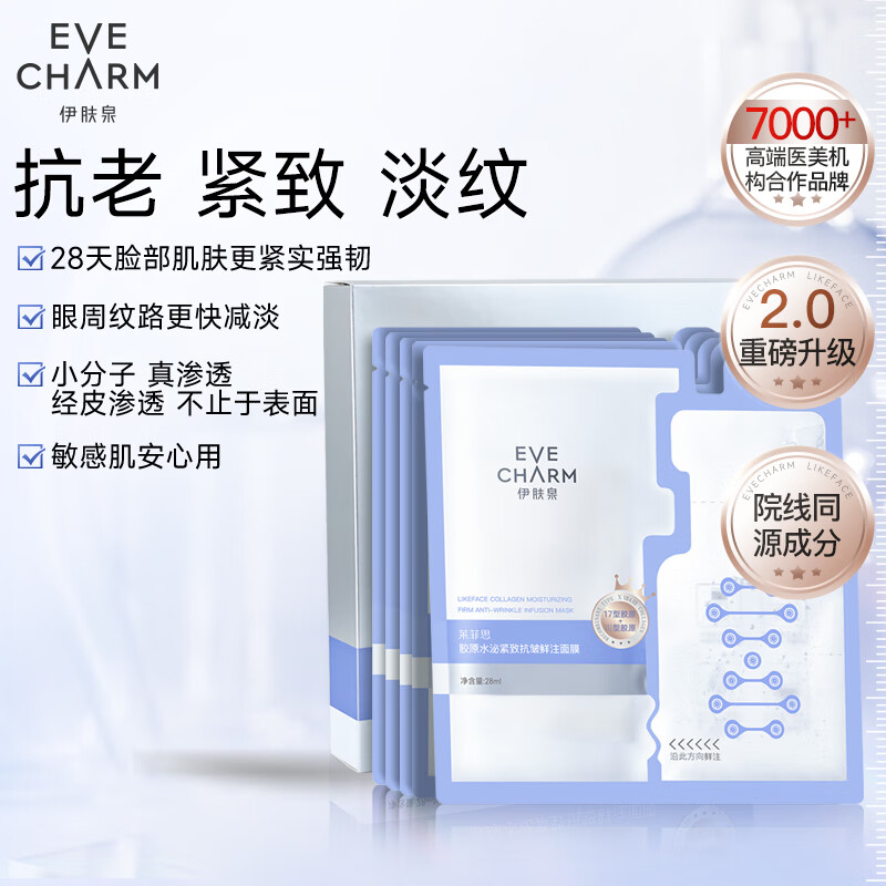 伊肤泉重组3型胶原蛋白紧致肌肤淡纹抗初老补水面膜5片礼物送女友送男友