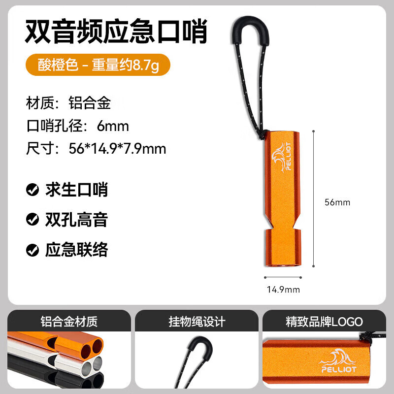 伯希和(Pelliot)户外口哨求生哨应急储备超响高频救援高音救生哨子16206801酸橙色