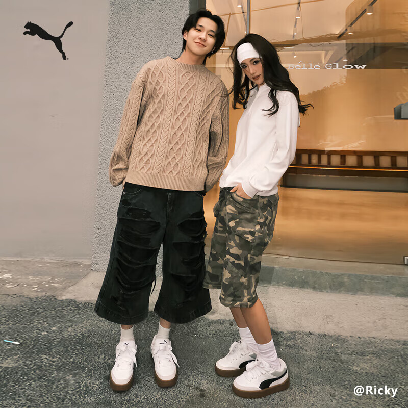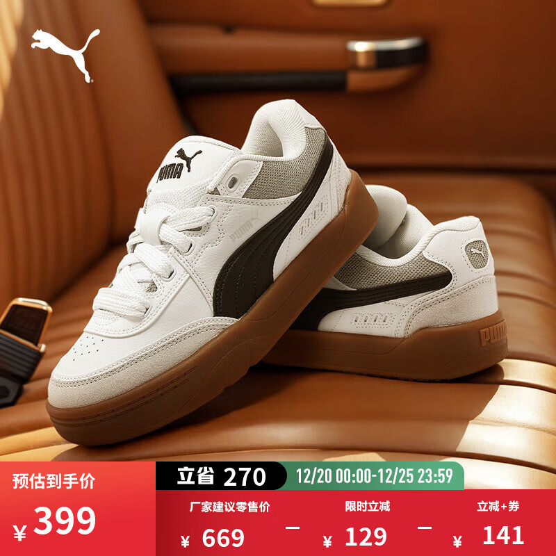 彪马(PUMA)【面包鞋】复古滑板鞋男女新款冬季休闲板鞋PARK400497 白-黑色-灰色-01 42