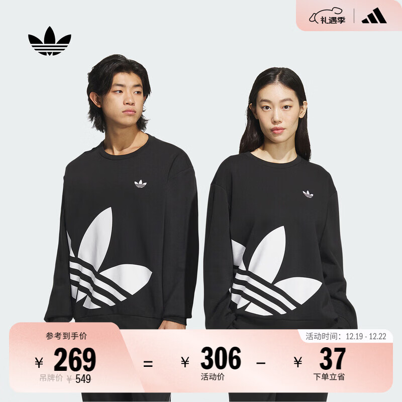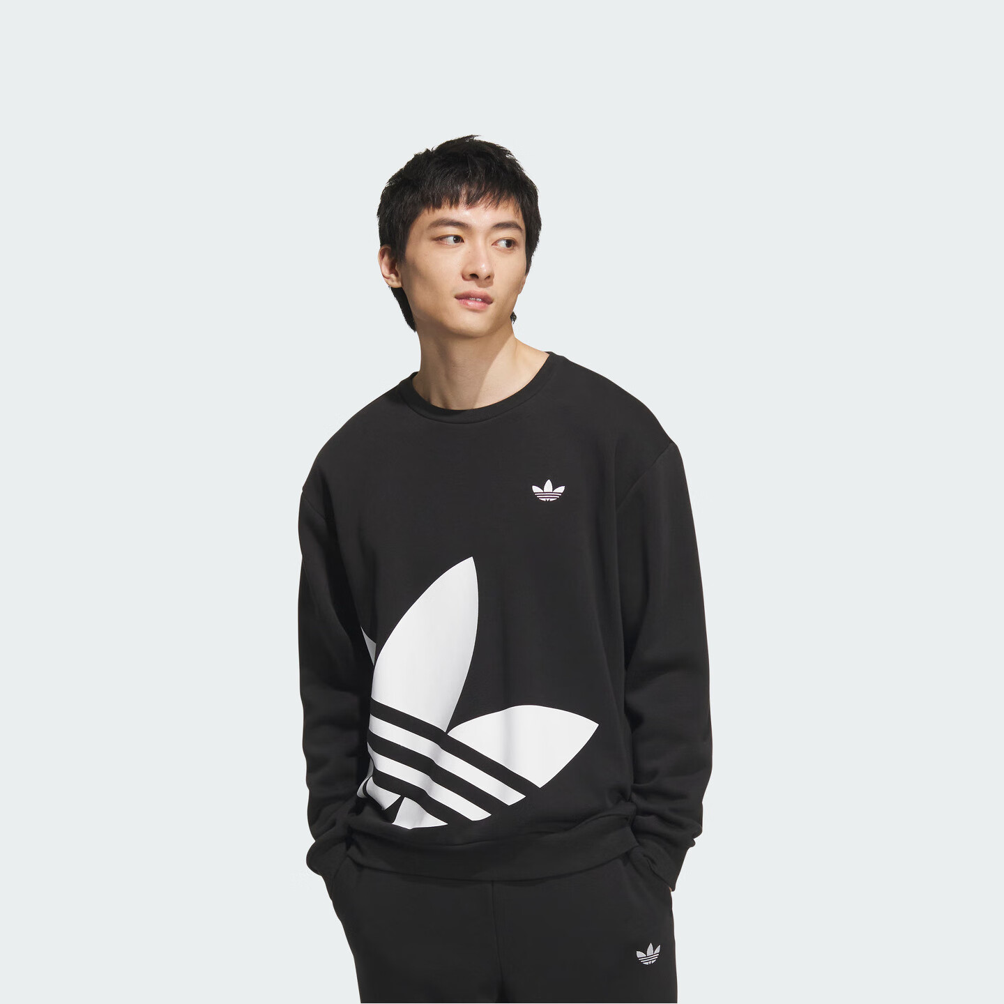 adidas经典时尚宽松抓绒圆领卫衣套头衫男女秋季阿迪达斯三叶草 黑色 M