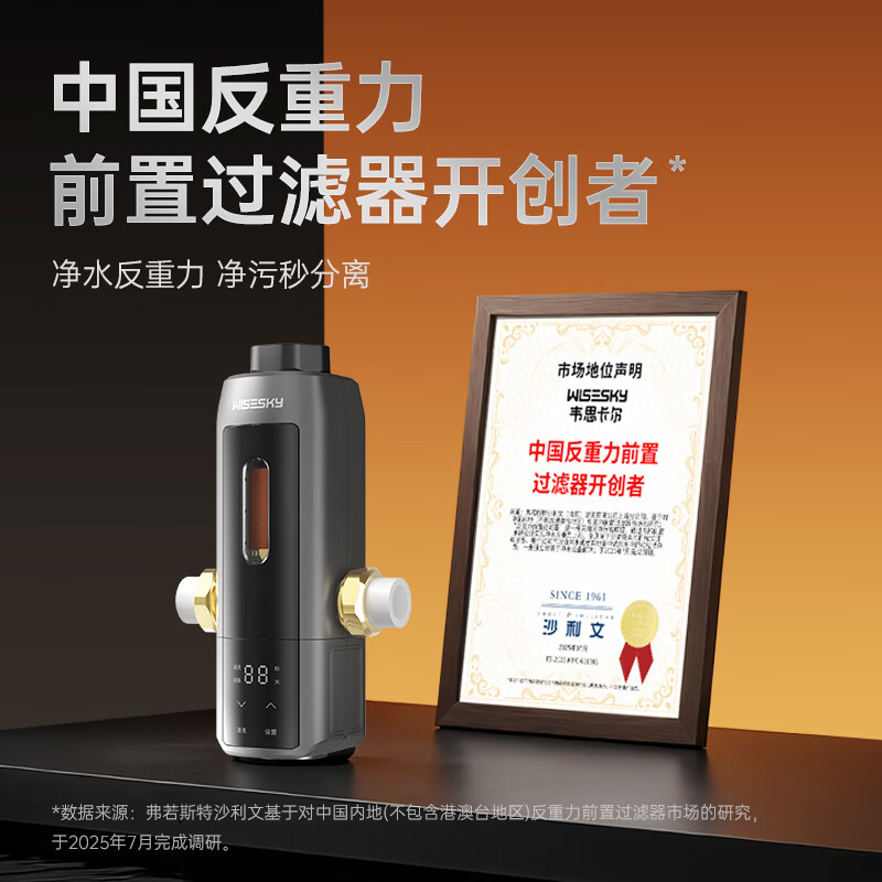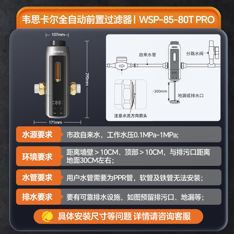 WISESKY韦思卡尔全自动款反重力前置过滤器超12T流量全屋家用自动清洗防爆防冻净水器 WSP-85-80T Pro