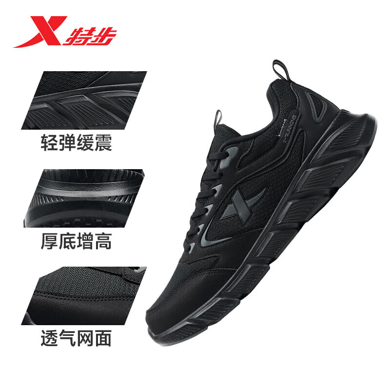 特步(XTEP)男鞋运动男旅游鞋子跑步鞋减震回弹轻便网面透气休闲鞋跑鞋男 1-黑色【网面】 42