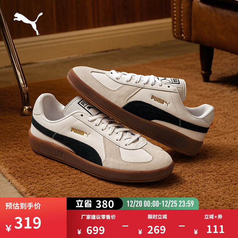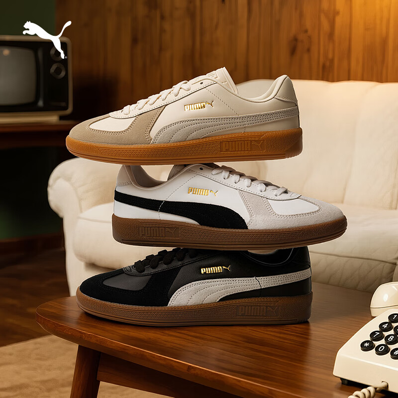 彪马(PUMA)【德训鞋】经典复古T头鞋男女同款网球风休闲板鞋386607 白-黑色-树胶色-21 38