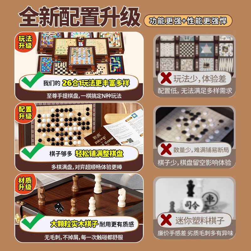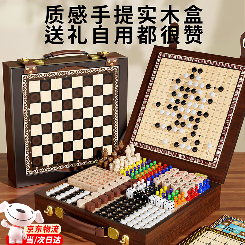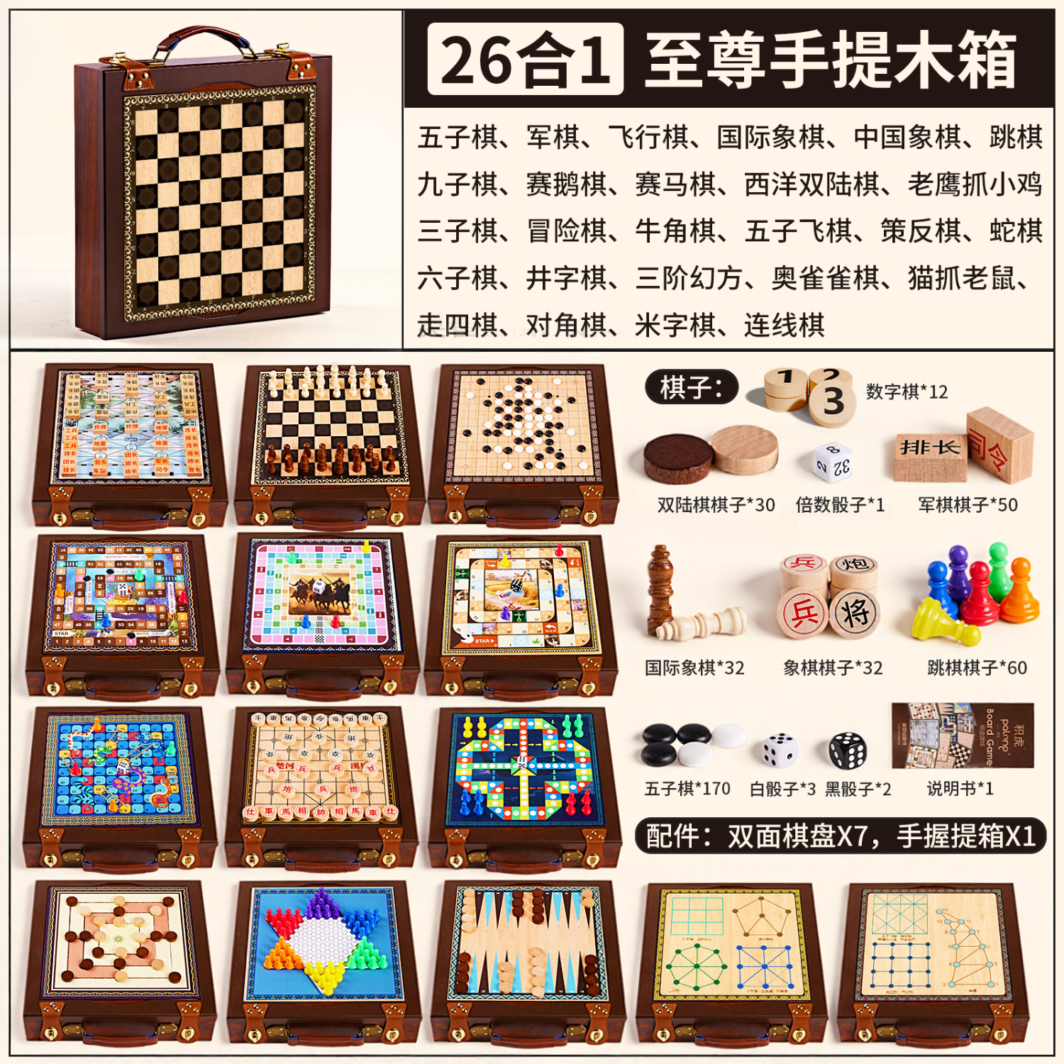 积虎多功能棋盘多合一五子棋益智过家家玩具男女孩6-10岁男童生日礼物 【至尊手提木箱】26合1多功能棋盘