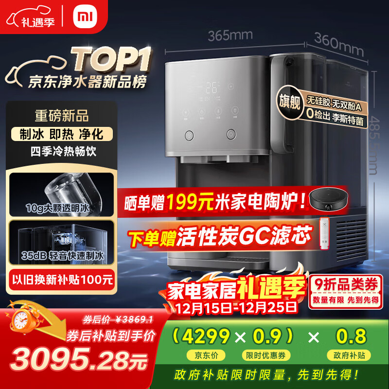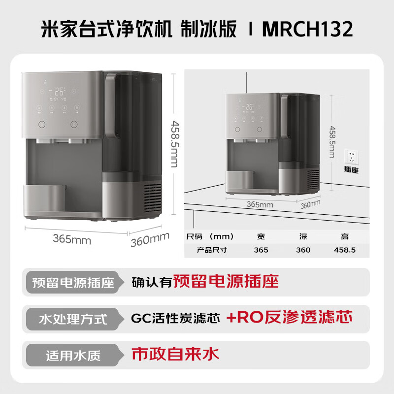 米家小米台式净饮机制冰版家用母婴级净水年会行政采购反渗透制冷加热直饮一体机3年长效滤芯 一级水效