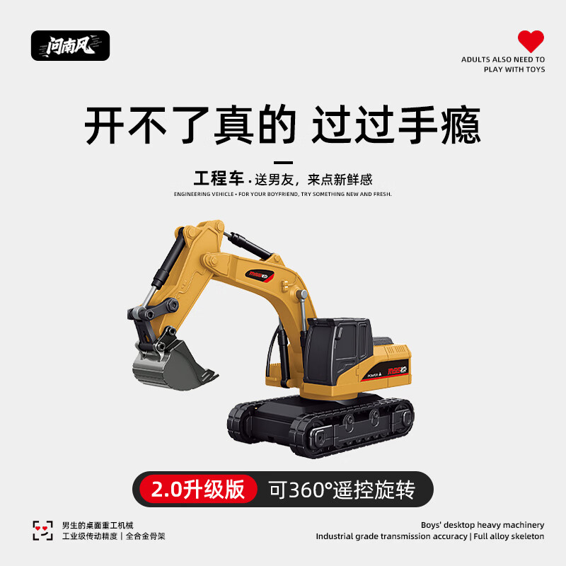 问南风合金迷你遥控挖掘机履带工程车电动圣诞礼物儿童玩具男孩生日礼物