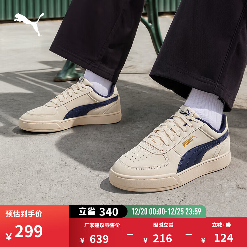 彪马(PUMA)经典美式休闲小白鞋男女新款冬运动板鞋CAVEN 391939 杏仁糖色-海军蓝-09 42