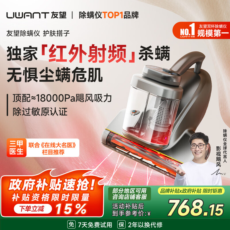 UWANT友望红外除螨仪【央妈节目推荐】CM2402皓影灰高温杀菌护肤搭子紫外线杀菌家用床上除螨机除螨吸尘
