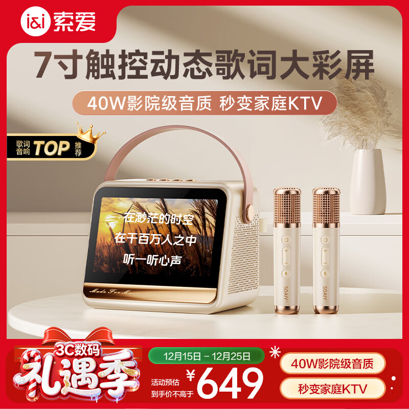 索爱(soaiy)GC520Pro 悬浮歌词蓝牙K歌音箱无线话筒麦克风一体式儿童户外家庭用ktv男女唱歌生日礼物 白