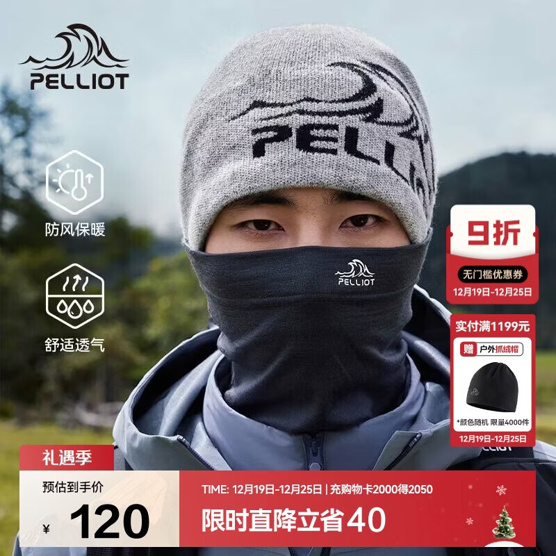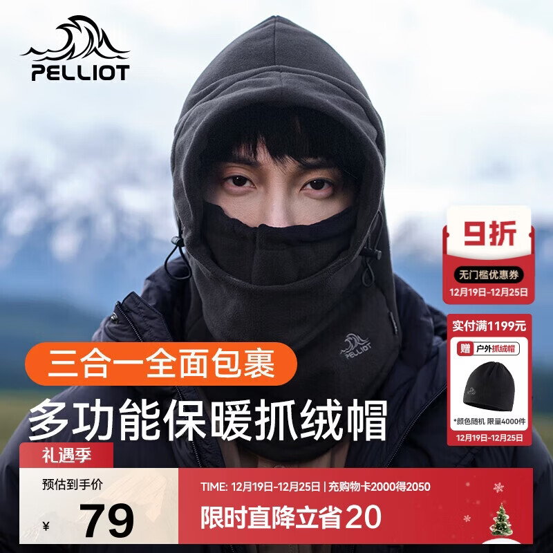伯希和(Pelliot)防寒面罩户外帽子男女冬季加厚抓绒保暖防风骑行登山165034015黑