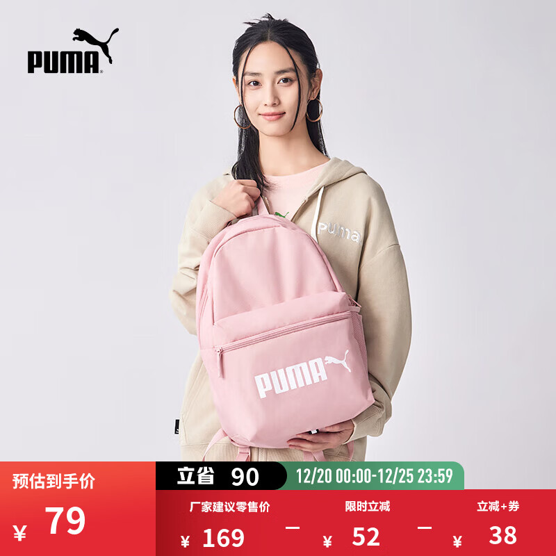 彪马(PUMA)通勤旅行大容量双肩背包男女同款学生印花书包077482 新婚粉 05 OSFA/均码