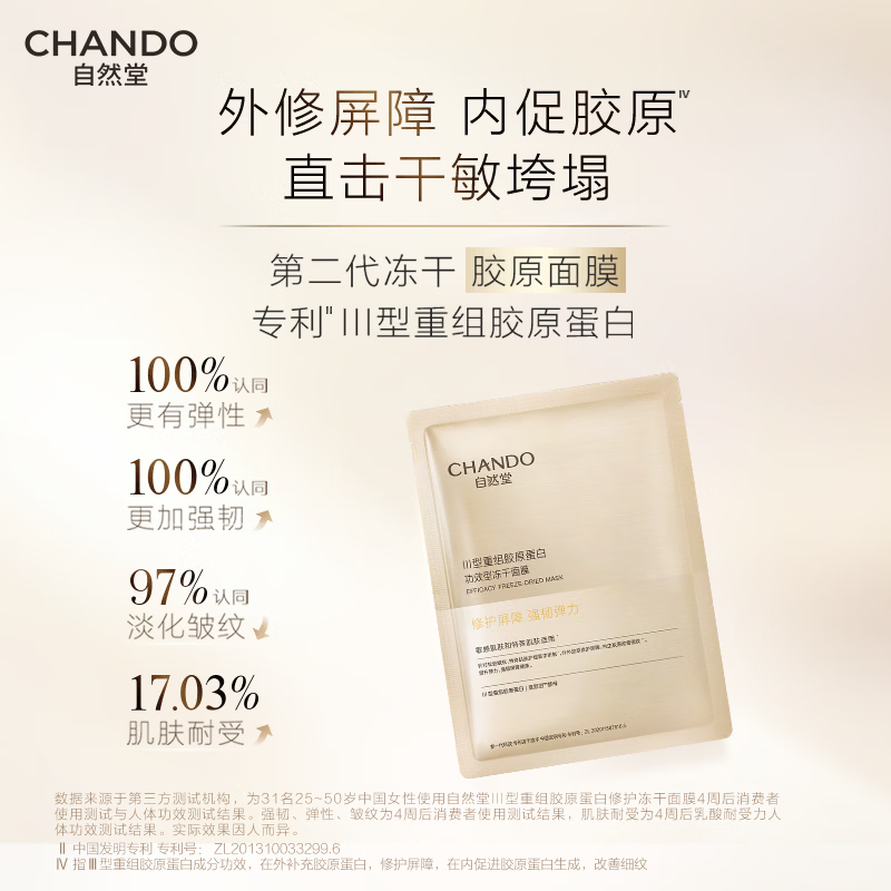 自然堂【周翊然同款】冻干胶原面膜0.65g×5片修护抗皱紧致敏肌生日