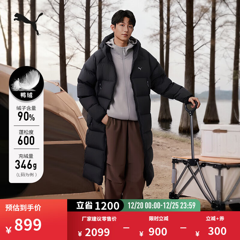彪马(PUMA)600蓬90绒保暖长款鸭绒外套男女款新款冬季羽绒服 684116 黑色-01 M (175/96A)