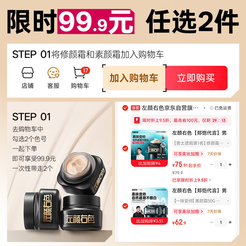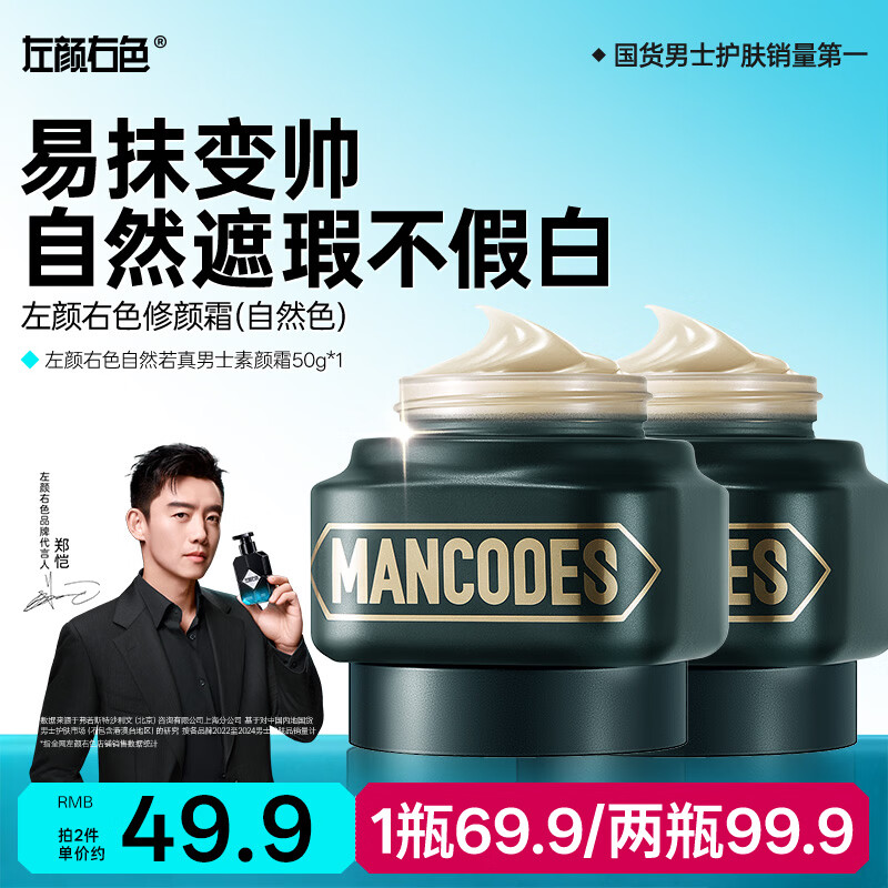 左颜右色男士素颜霜修颜霜保湿面霜控油保湿专用遮瑕膏粉底液护肤品50g