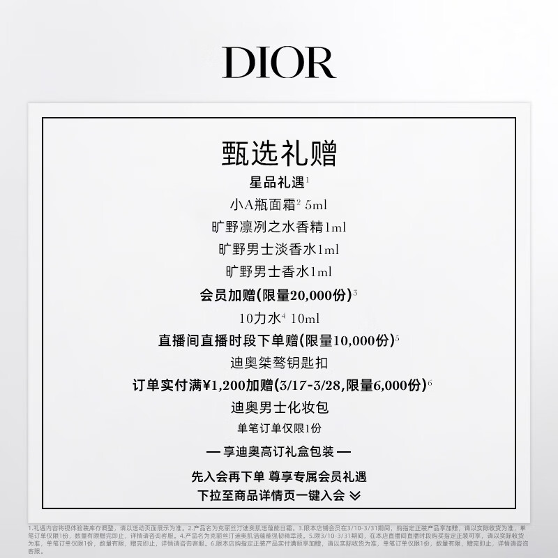 迪奥Dior旷野男士淡香水60ml木质香调香氛留香礼盒装生日礼物送男友