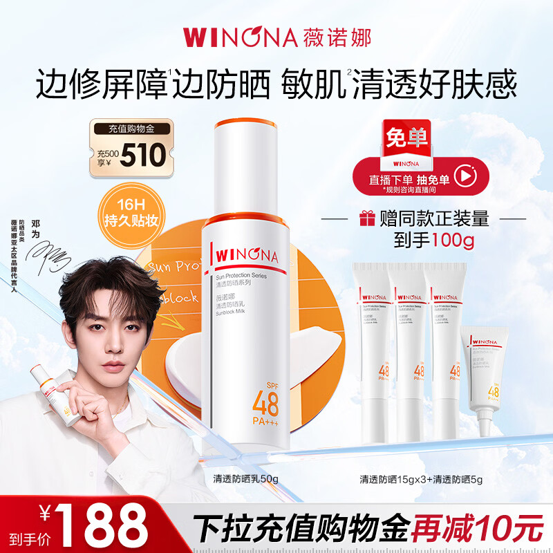 薇诺娜【邓为专属】清透防晒乳50g高倍防晒霜隔离霜节日礼物