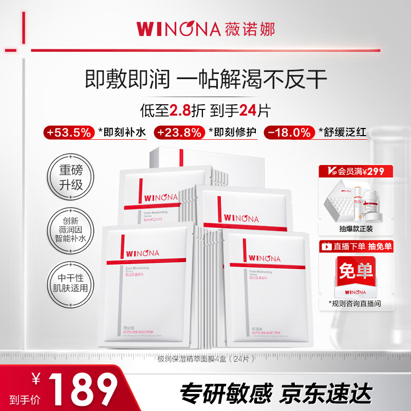 薇诺娜【钦选同款】极润面膜2.0面膜24片补水保湿护肤品化妆品