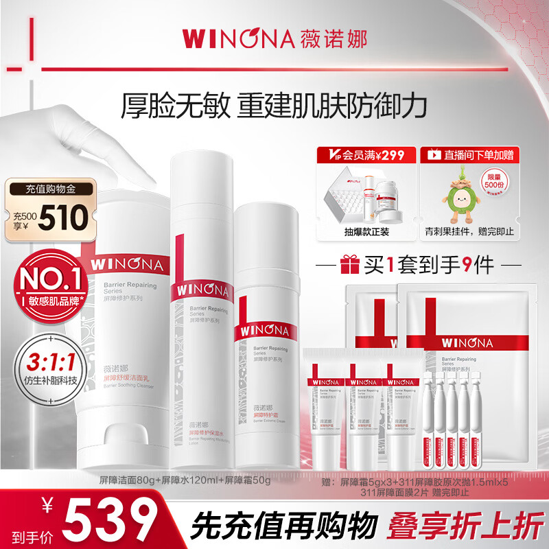 薇诺娜屏障洁水乳3件套洗面奶爽肤水面霜护肤品套装
